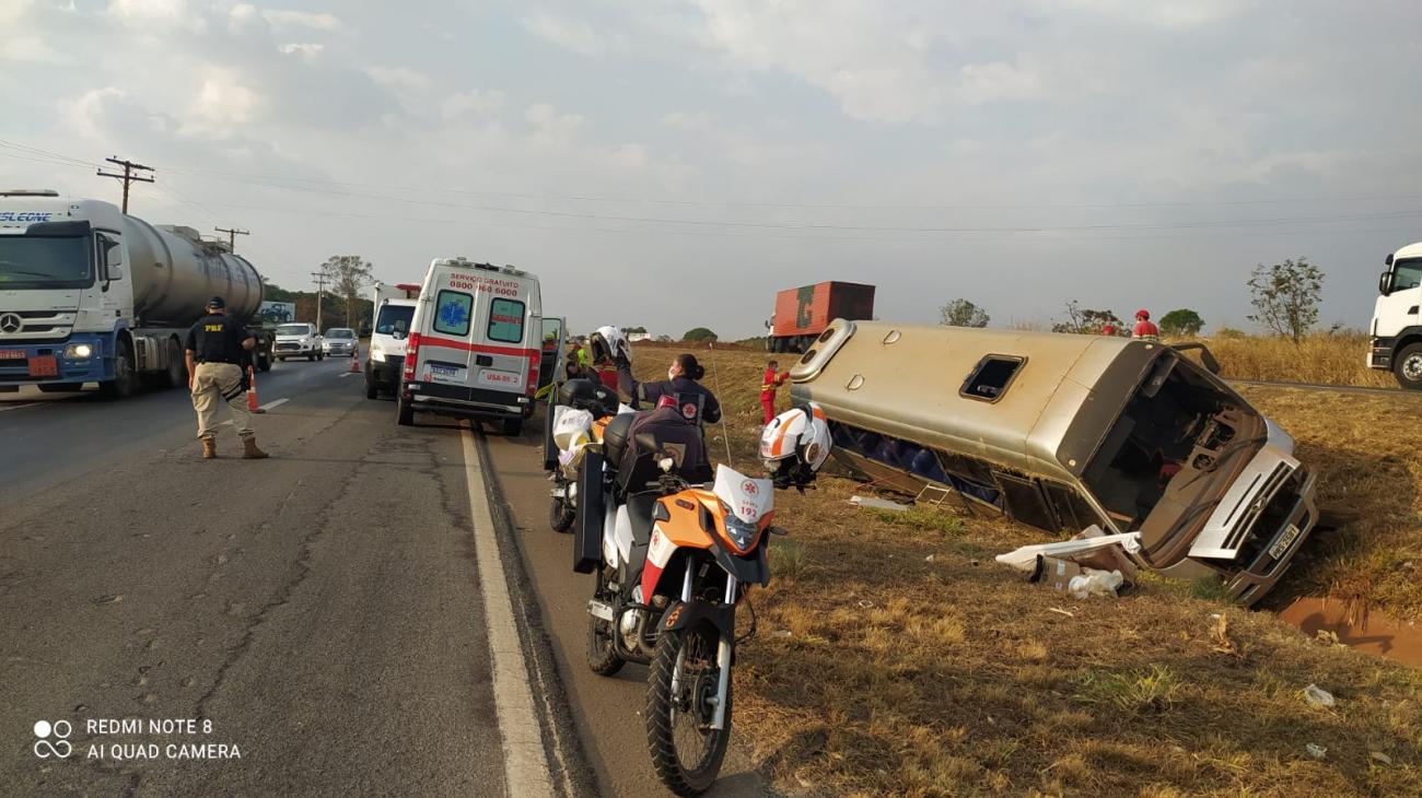 Um acidente grave envolvendo passageiros de um micro-ônibus aconteceu na tarde desta sexta-feira (24),na BR153 em Aparecida de Goiânia. De acordo com informações preliminares, são que várias vítimas foram socorridas e levadas para unidades de pronto atendimento de Aparecida, em estado grave. Tudo indica que o motorista perdeu o controle do veículo e caiu em uma vala de escoamento de água da rodovia.