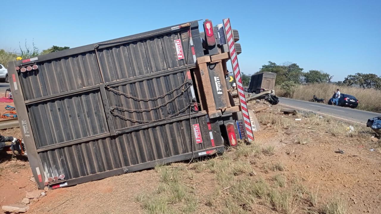 Um grave acidente aconteceu na BR 060 entre os municípios de Abadiânia e Anápolis na manhã desta quarta-feira (01). Um caminhão que transportava bovinos tombou no canteiro central da rodovia, o motorista ficou preso as ferragens e não resistiu. De acordo com a Polícia Rodoviária Federal- PRF, animais ficaram expostos por toda a rodovia que liga Goiânia ao Distrito Federal, causando demais acidentes com veículos que transitavam pela região. Parte da pista foi interditada para a retirada do corpo do motorista, e posteriormente a carga viva que era transportada pelo caminhoneiro.