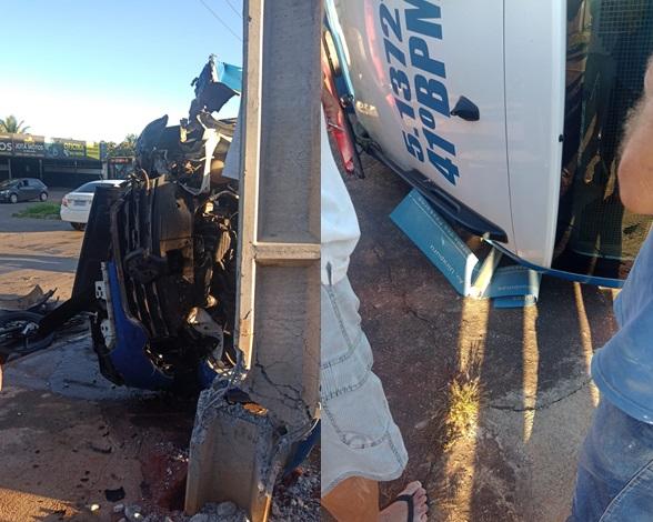 Um sargento e um soldado da polícia militar ficaram feridos após um acidente na tarde desta segunda-feira (01) no setor Morada dos Pássaros, em Aparecida. De acordo com informações apuradas por nossa equipe, a viatura 5.13721 do 41º Batalhão da Polícia Militar fazia um acompanhamento de um veículo pela Avenida Uirapuru, quando colidiu com uma motocicleta e um automóvel de passeio, parando apenas após bater em um poste de energia elétrica. Ainda de acordo com as informações, os suspeitos conseguiram fugir, e os policiais abordo da viatura tiveram escoriações e foram levados para uma unidade de saúde do município. Apesar de a motocicleta ter ficado destruída, o condutor teve apenas uma fratura no membro superior e escoriações em demais partes do corpo. Até o fechamento da matéria, a polícia militar não emitiu nenhuma nota sobre o acidente.